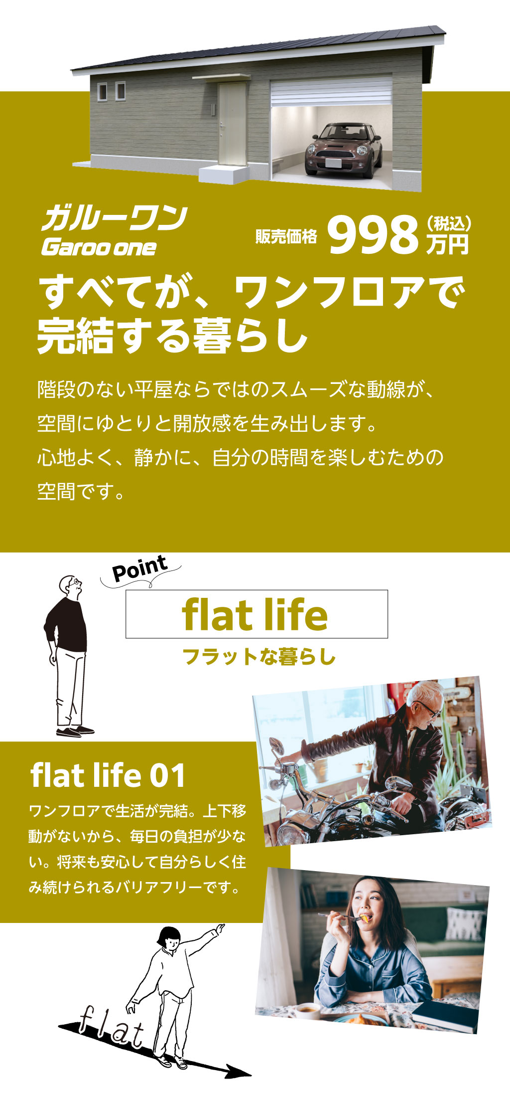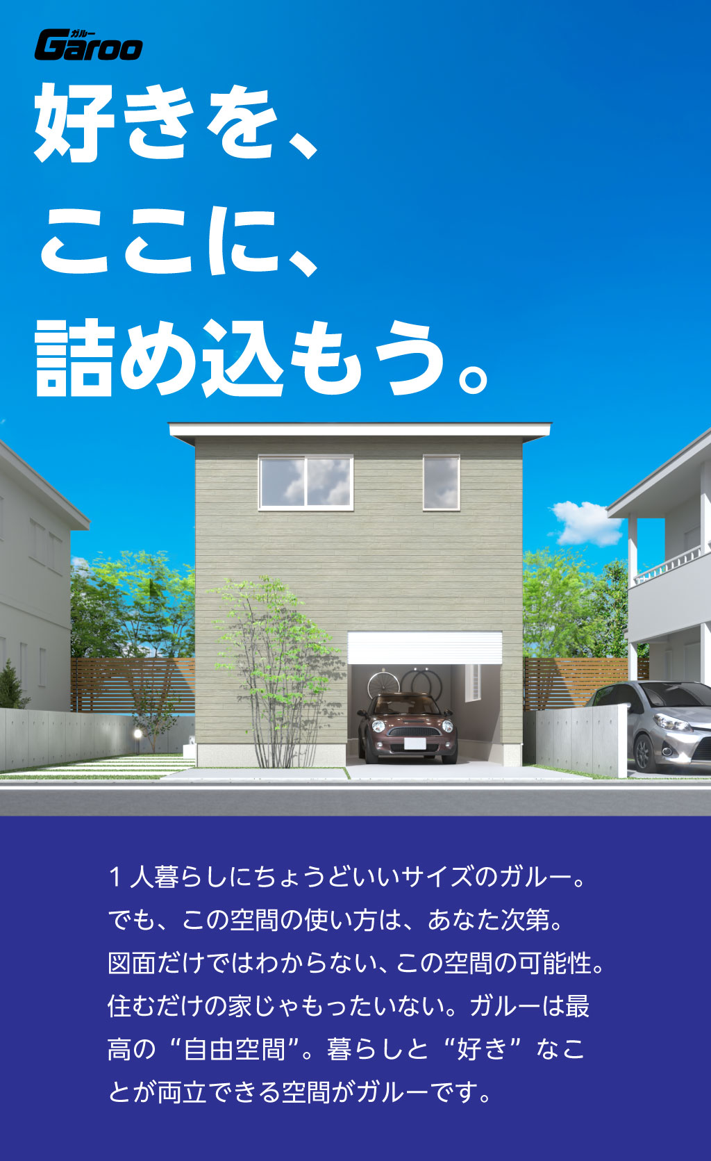 アパートで暮らすと言う選択肢もありますが、同等の金額で、自分のもの(資産)にできるというメリットが「Garoo ガルー」にはあります。建物本体、登記費用、固定資産税、火災保険など全て含んで、月々56,000円ほどで、暮らすことができます。
