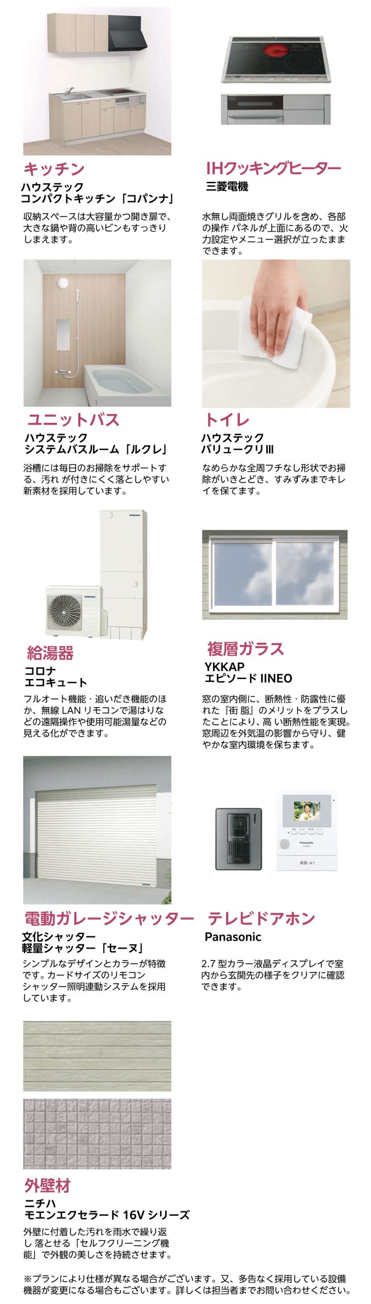 【特記・詳細について】※掲載商品は、実際の商品とは多少色調が異なる場合がございます。商品の仕様、規格、価格等は予告なく変更することがございます。※確認申請手数料、地盤調査に係る改良工事費、外部給排水・給湯・電気工事費が10mを超える場合は別途費用が別途かかります。※この商品は積雪荷重1.5m対応の商品です。エリアにより2.0m対応場合は別途オプション工事となります。詳しくは担当者までお問い合わせください。※規格住宅プランの中で別途に間仕切り壁など検討中の方は担当者までお問い合わせください。
