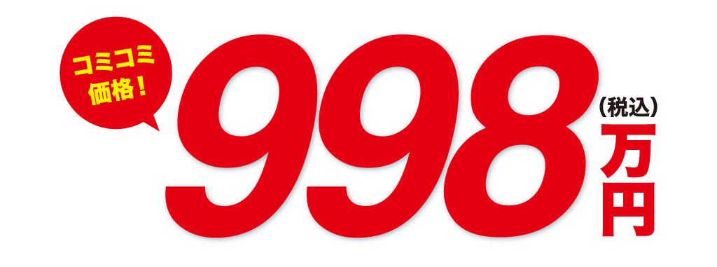 ※本体価格の支払いは998万円プランの場合で試算。自己資金50万円、25年ローンの場合。金利:1.5%にて試算。※月々の支払額はあくまで試算であり将来の金利動向に例としては、返済額とは異なる場合がございます。※土地の代金は含みません。あらかじめご了承ください。