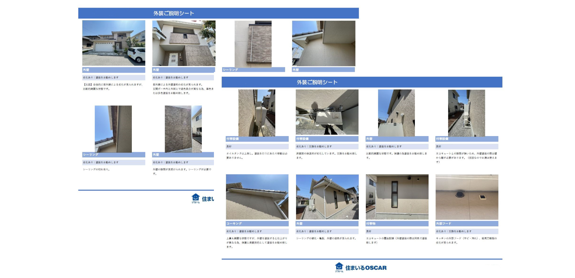 外壁は建物の立地や周辺環境によって劣化具合が異なります。状態をよく把握し、今後起きうる症状を考え、住宅にとってベストなメンテナンス方法をご提案できるよう今後も取り組んでまいります。