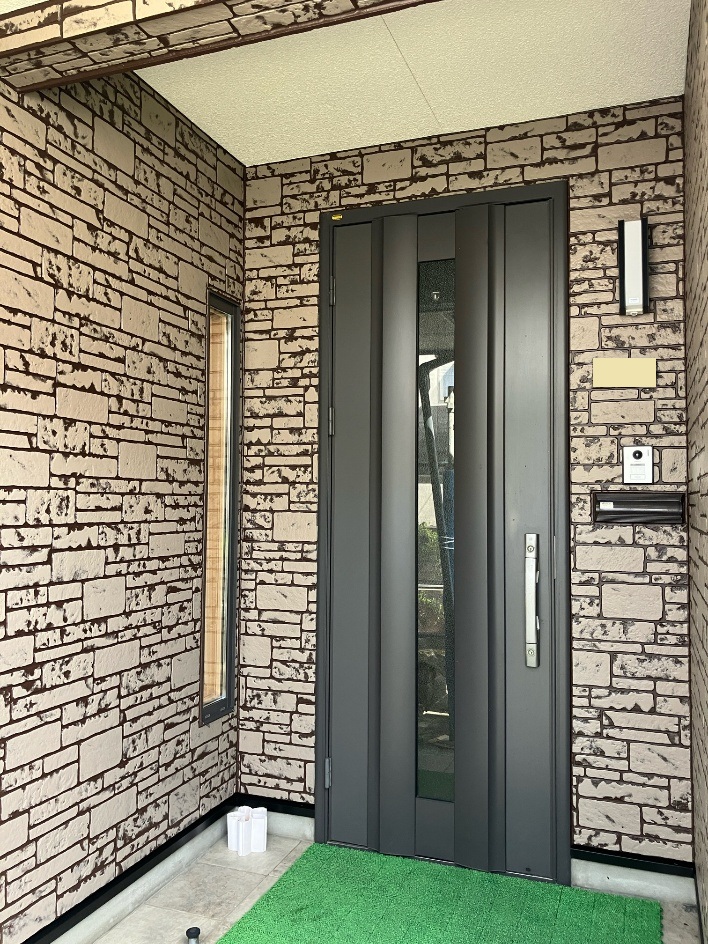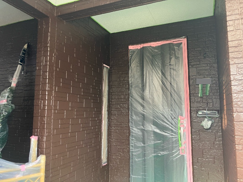 全体的に色のトーンを上げたので、明るい印象に変わりました。玄関廻りのダブルトーン(2色塗り)とベースの外壁とのコントラストがスタイリッシュでキレのある印象へと大変身しました!