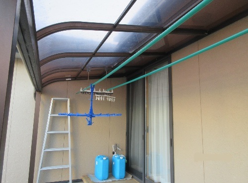 今回は、エアコン・電気メーター・配線カバー・目隠しルーバー・竪樋・テラス屋根の天井材(ポリカ板)等を外しました。