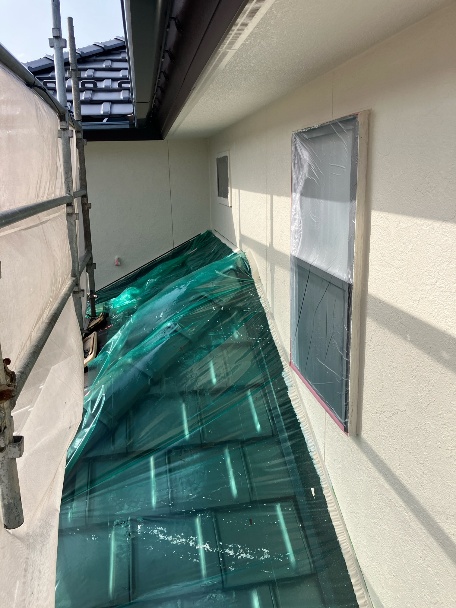 そして、翌日塗装部分の壁面を水洗いし週明け、防水工事に取り掛かります。
