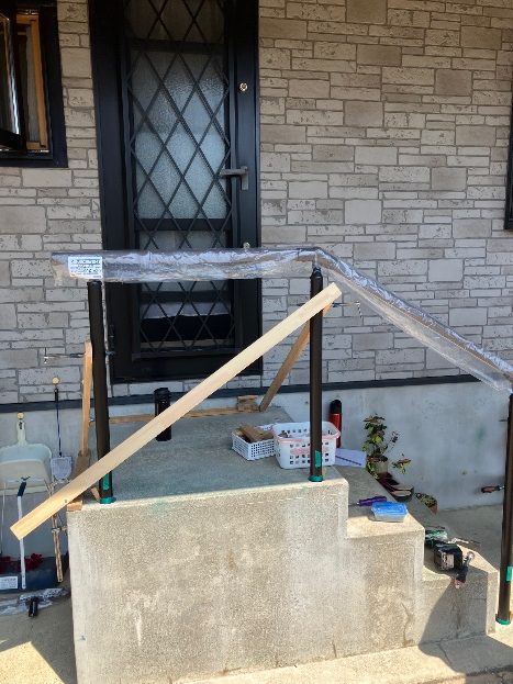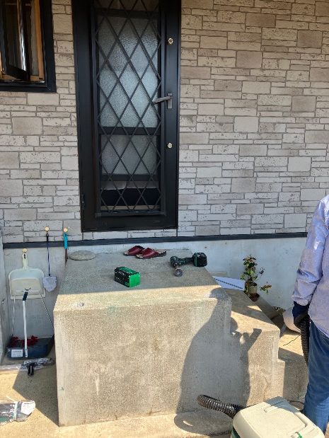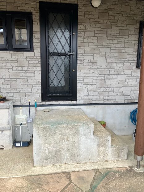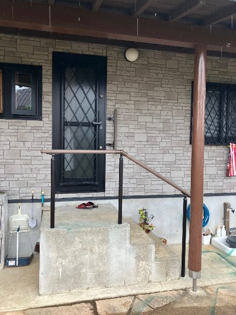 足を怪我してから階段の昇り降りに不安があり、勝手口から庭へ出る階段に手摺を付けてほしいと相談を受け、ケアマネージャーの担当者様とも打合せを行いました。
