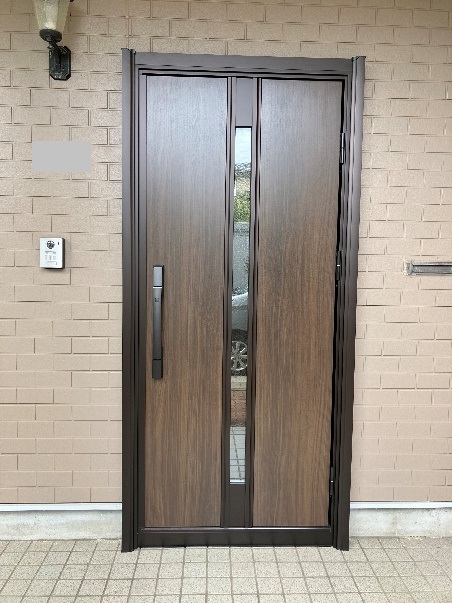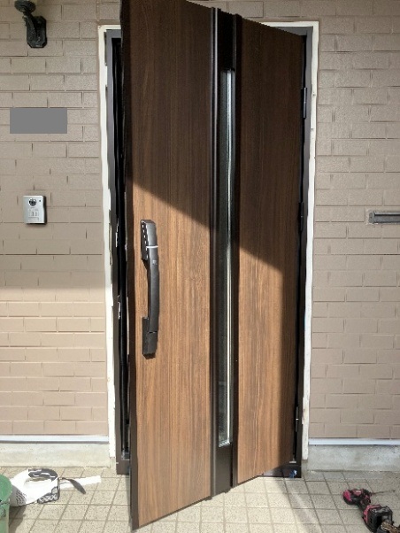 お客様のご要望で、ポケットキー付きの玄関ドアになりました。ポケットキーを使用して簡単に施錠・解錠できるため、とても便利になりました。また、ポケットキーの設定も行い、完了です。