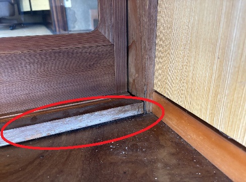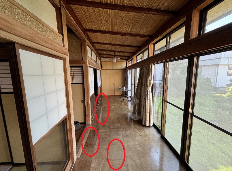 今回も和室の出入り口、廊下の手前に多く見受けられました。(赤丸印)