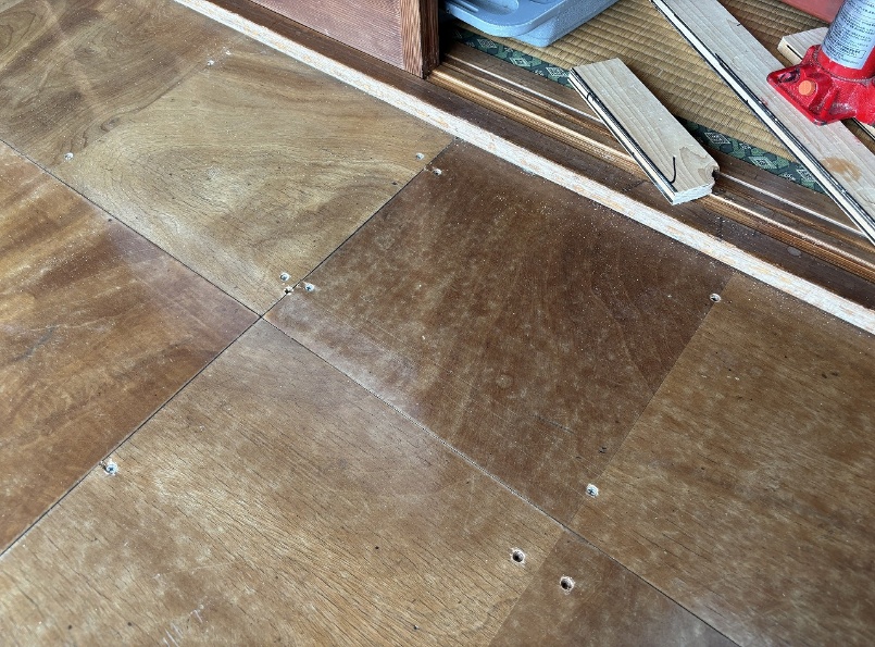 ベニヤ板とフロア材を上から張って作業は終了です。
