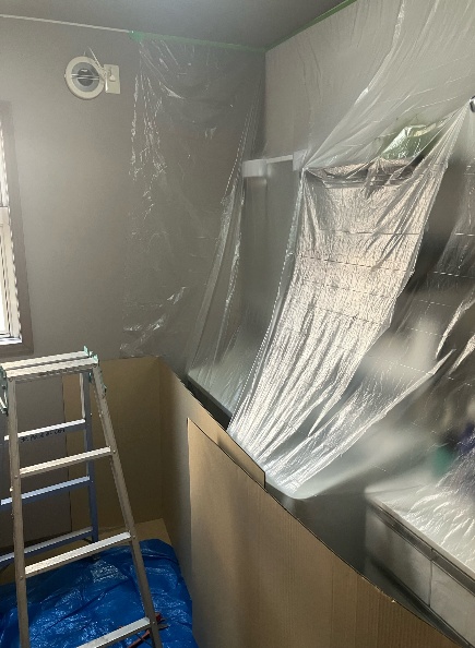 この作業がないと解体作業にとりかかれません。写真にはありませんが、搬入経路もきちんと養生してくれる工事担当者に感謝しかありません。