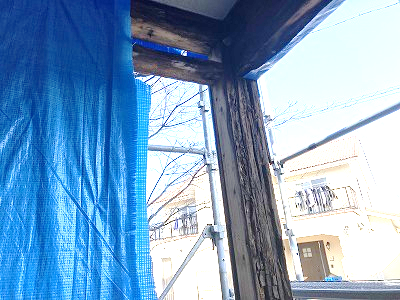 腐食している部分の木下地は大工さんでカットして、新しい下地を施工します。