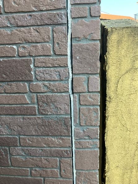 外壁のコーキングが硬化し、隙間ができており、破断もしています。