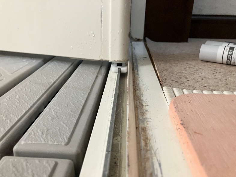 既存の下枠を確認すると、下枠排水で、段差が少ない、バリアフリータイプであることが確認できました。