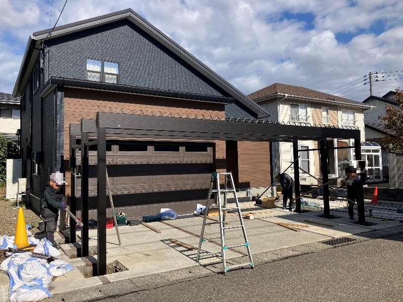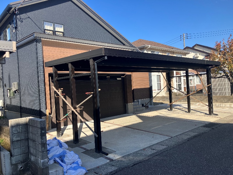 間に柱なし?!大きなお車でも駐車可能3台入りカーポート!!(カーポート設置工事)